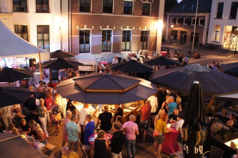 Gezelligheid tijdens het wijnfeest op de Markt in Aalten. – Foto: Stichting Aalten Promotie
