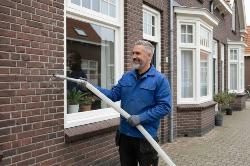 Isoleren van de spouwmuur van een woning. – Foto: Slimster