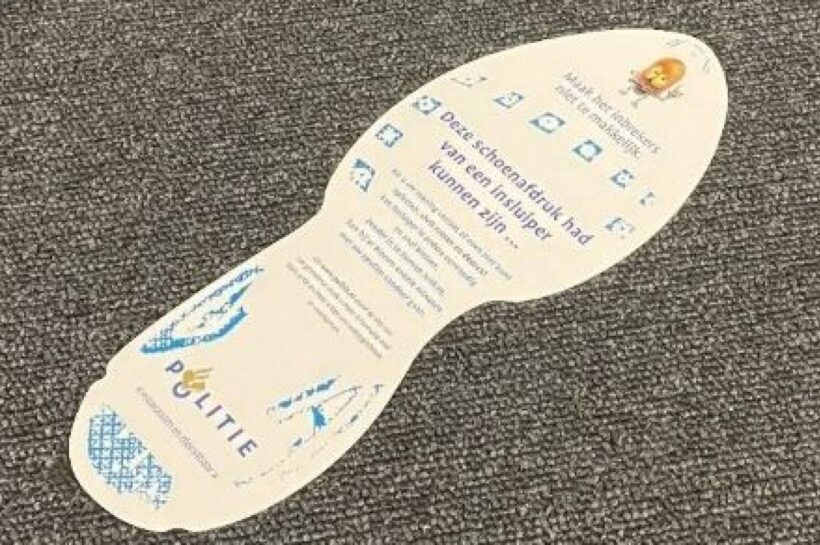 “Deze schoenafdruk had van een inbreker kunnen zijn!” Wit voetje achtergelaten om bewustzijn te vergroten. – Foto: Gemeente Berkelland