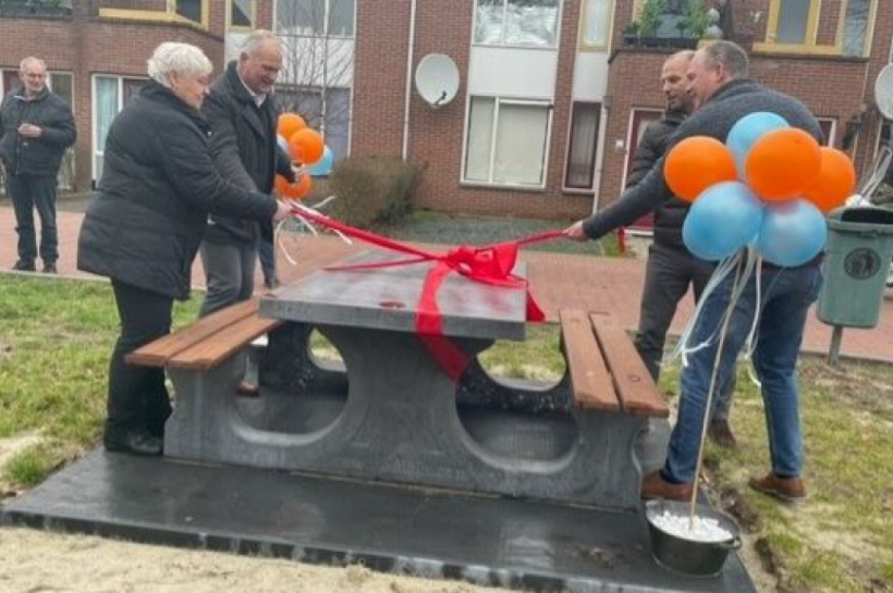 De gemeente, Figulus Welzijn en De Woonplaats boden aan de buurt een picknickbank. Wethouder Erik Groters, Eric Wichers van Figulus Welzijn en Bert Stamsnieder van De Woonplaats onthulden samen met buurtbewoner mevrouw Veldboom de picknickbank. Ze spraken over de wens dat de buurt op het groene plein elkaar vaker gaat opzoeken voor een praatje en een drankje bij de picknicktafel.