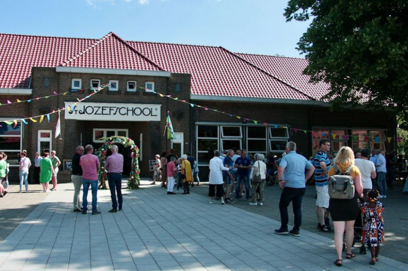 Aan verhalen is zondag 3 juli op de open dag geen gebrek. De dag heeft een vleug reünie en een feest meegekregen. Oud-leerling Mark Lankveld loopt rond met een aantal werkboekjes van leerlingen uit de jaren ’70. Hij heeft ze gekregen van een oud-meester die ze nog bewaard had. Hij probeert ze terug te geven en hoopt vandaag zijn tijdgenoten daarvoor te treffen. Op de St. Jozefschool zitten nu honderd leerlingen op de school. In de jaren van de wederopbouw waren dat er 350 en zijn er zelfs noodlokalen bijgebouwd geweest. De huidige kinderen hebben in groepen de vier ouderen ook mogen bevragen. Toen Fiene Hulshof haar lei met de griffel uit haar tas haalde en vertelde hoe ze daar op werkten, zei een leerling spontaan: ‘dat is een ouderwetse Ipad, wat gaaf!’