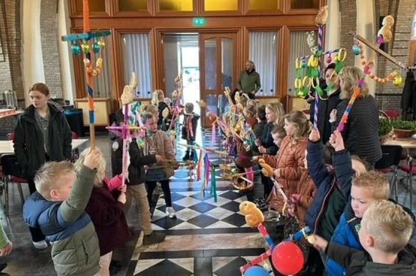 Voor de kinderen is het vooral een feest om met mooi versierde stokken in de kerk te zitten en daarna in optocht langs het verzorgingshuis naast de kerk te lopen. Ze zingen Eén ei is geen ei, twee ei is een half ei, drie ei is een paasei. En daarmee is het ook voor de ouderen een feest. Uitbundig zwaaiend vanachter het raam zien ze de bonte stoet kinderen voorbijtrekken. Eenmaal terug in de kerk is er ook nog een zakje snoep voor alle jonge deelnemers en worden ook de broodhaantjes verorberd.