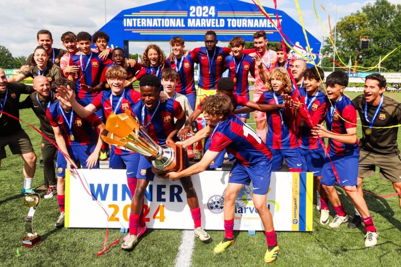 GROENLO – “Dan vragen wij nu uw aandacht voor de hymnes van FC Barcelona en Palmeiras.” Het is zondagmiddag 15.45 uur op Sportpark Den Elshof als de finale van het 34e Marveldtoernooi op het punt van beginnen staat. Het is hetzelfde affiche als afgelopen jaar, toen beiden ook de sterksten bleken na 3 dagen en liefst 42 wedstrijden toernooivoetbal op het allerhoogste niveau. Zowel het niveau van het gebodene als de tot in de puntjes geroemde organisatie, als ook de inzet en gemoedelijkheid van de vrijwilligers worden alom genoemd door deelnemende teams en scheidsrechters.