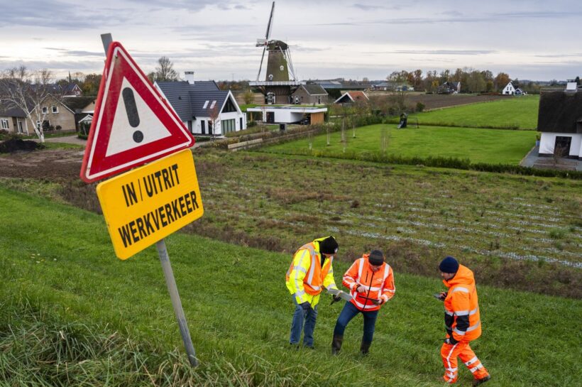 Medewerkers waterschap controleren de dijk bij Varik. – Foto: ANP