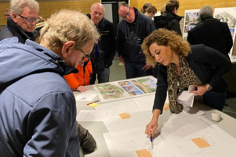De Immanuelkerk in de wijk vormt op de maandagavond in maart het trefcentrum waar de buurtbewoners uit de hele wijk zijn uitgenodigd om de schetsontwerpen te bekijken. Even na zevenen loopt de kerk vol met mensen die zich verdringen bij de uitleg van de tekeningen op standaarden en een tafel. ‘Gelukkig weer een supermarkt in de wijk’, is de reactie. ‘En er wordt ook iets gedaan aan de woonbehoefte in de wijk’. De bedoeling is dat er 24 huurappartementen in drie verdiepingen boven de supermarkt worden gerealiseerd, maar dat kan veranderen wanneer bezoekers ook gaan vragen over betaalbare koopappartementen. De bedoeling van de avond is dat de projectontwikkelaar Janssen De Jong zoveel mogelijk reacties wil ontvangen op hun eerste ontwerpen.
