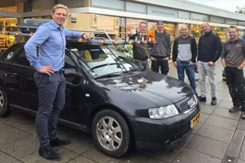 Een dag na het evenement kwamen de winnaars naar Jumbo Leussink in Aalten om hun prijs op te halen. De krat werd op het dak van hun Carbadge-auto geplaatst, waarmee het team in februari zal deelnemen aan de Carbadge Run van Kopenhagen naar Helsinki. Met enige klim- en sjorwerk zat de krat stevig vast op de wagen.