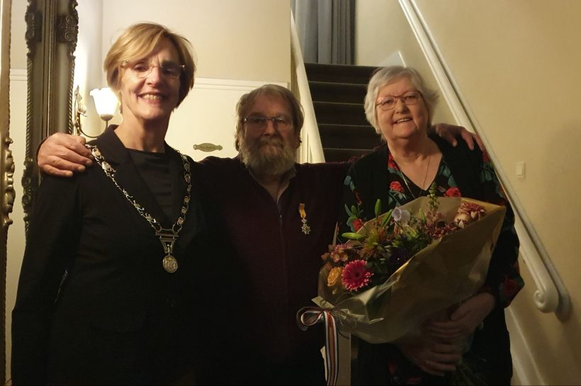 Hennie Lamers temidden van zijn vrouw en burgemeester Bronsvoort. – Foto: Gem. OG