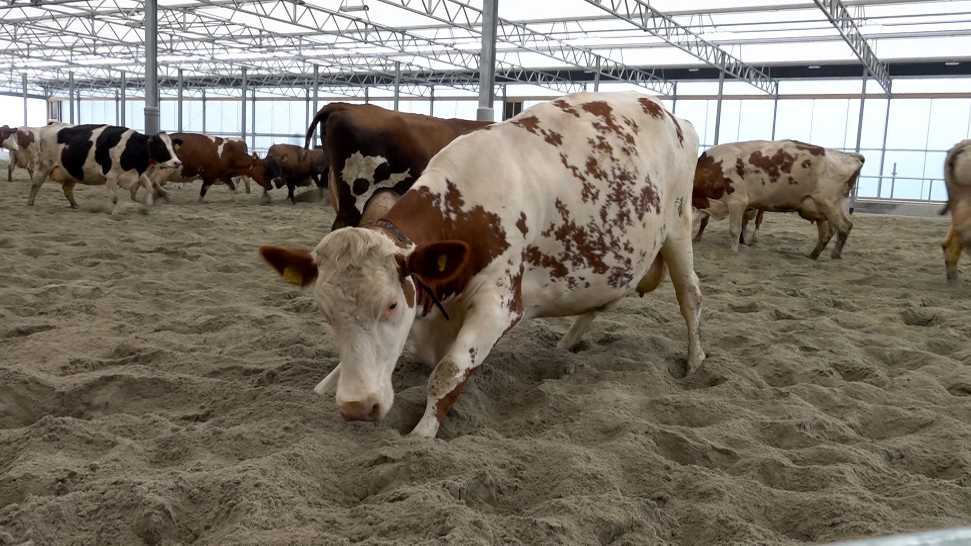 Koeien in zandbed: boer bouwt innovatieve stal
