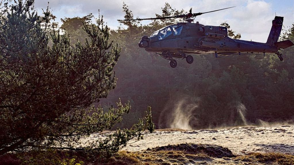 – AALTEN – Defensie oefent van maandag tot en met vrijdag met Apache gevechtshelikopters boven...