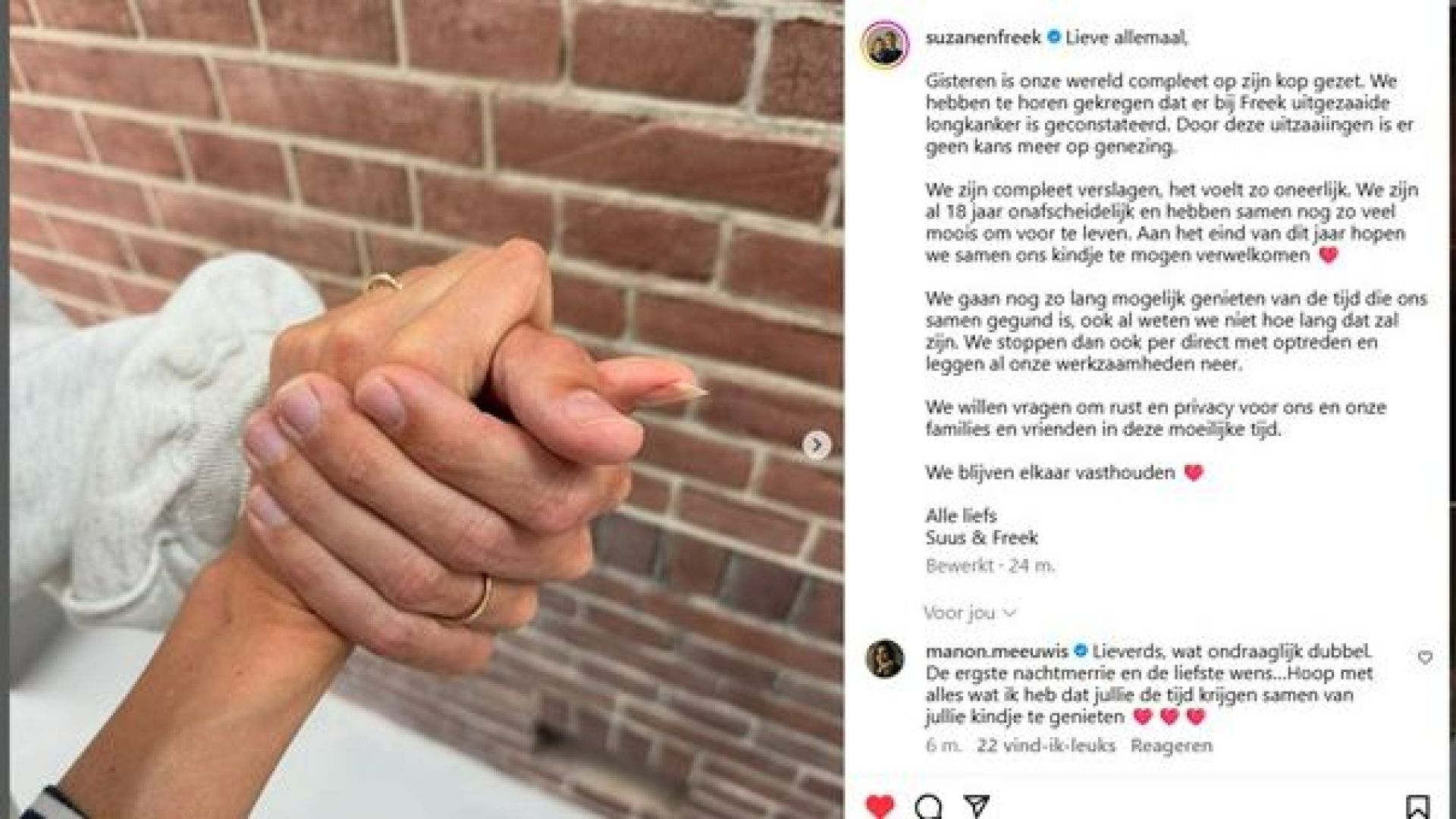 Lees verder...Suzan & Freek bedanken fans voor ‘onophoudelijke golf aan liefde’