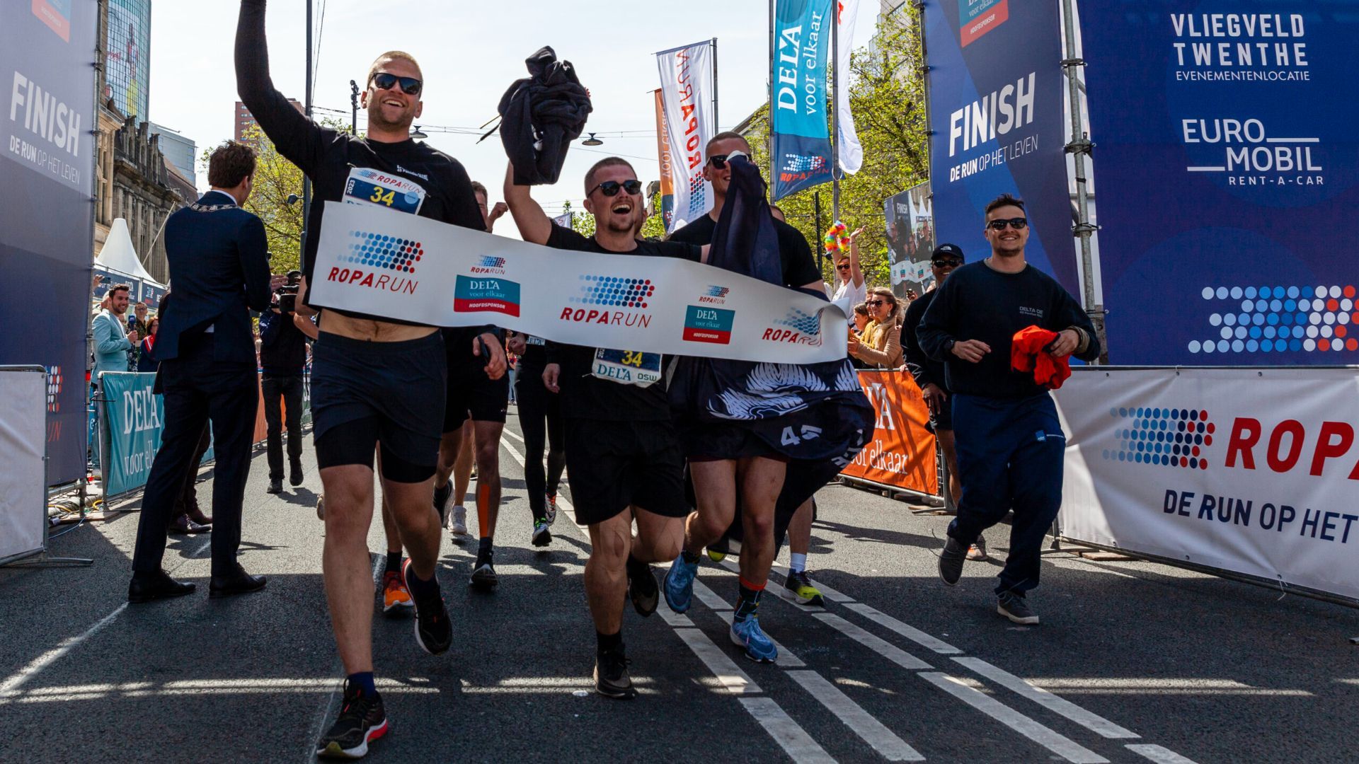 Deelnemers Roparun gefinisht op Coolsingel