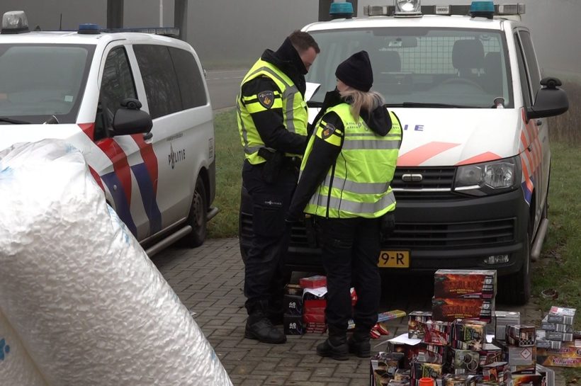 Agenten bij in beslag genomen vuurwerk – Foto: Omroep Gelderland