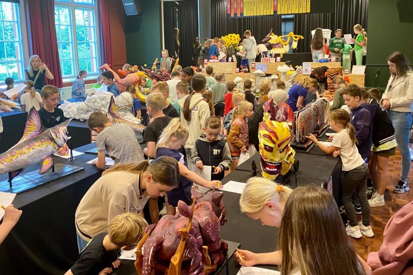 Als het maandag 9 uur is geweest, stromen schoolklassen binnen. Chantal Dusseldorp van de Corsokids deelt A4’tjes uit waarop vragen staan voor de speurtocht. De jongste klassen krijgen in een lokaal eerst een korte uitleg over de maquettes. “Met behulp van de vragen leren we kinderen anders naar de ontwerpen kijken,” legt Chantal uit. Het doel is kinderen enthousiast te maken. “Kinderen die niet met hun ouders deze ontwerppresentatie bezoeken, proberen we op deze manier ook te bereiken. Er zijn generaties ouders die de corsocultuur doorgeven aan de volgende generatie. Anderen doen dat niet. Door deze jaarlijkse maquettepresentatie proberen we de corsocultuur toegankelijker te maken.”