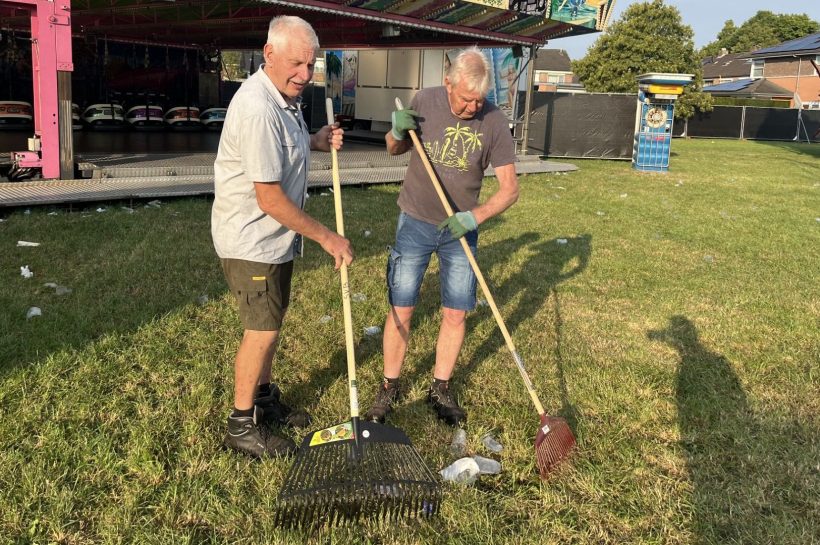 Het Beltrumse Volksfeest begon zondag met een bloemencorso. En ‘s-avonds werd er flink gefeest en gedronken. Dat gaf behoorlijk wat troep, maar om alles op te ruimen is er een speciale veegploeg.
