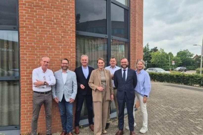 Het college van B&W met de projectleider opvang ontheemden Oekraïne en de locatiemanager. – Foto: Gemeente Oost Gelre