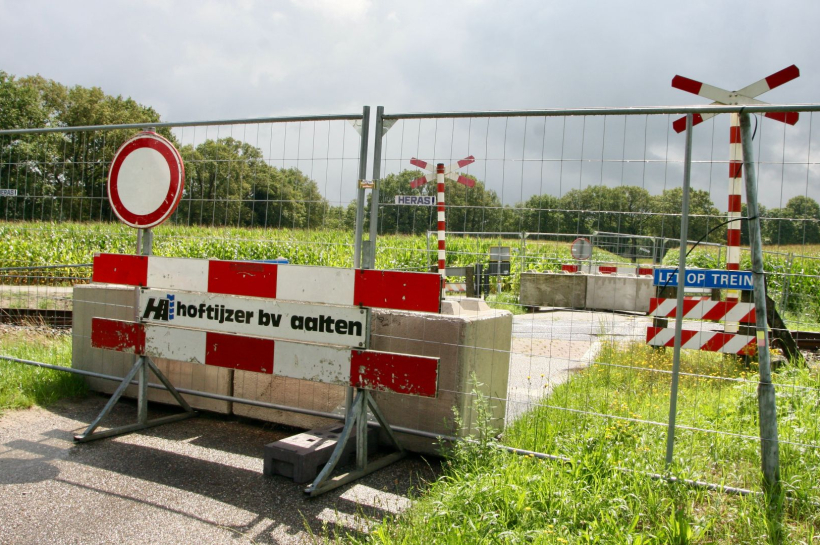 AALTEN – De onbewaakte overgang van het Kleuverspad tussen Aalten en buurtschap De Haart is definitief afgesloten. Betonblokken, bouwhekken en waarschuwingsborden voorkomen dat fiets noch een wandelaar erlangs of overheen kan komen. Voor de bereikbaarheid van enkele agrarische bedrijven is een weg parallel aan het spoor gelegd naar de Buninkdijk waar verkeer via een beveiligde overgang het spoor over kunnen gaan.