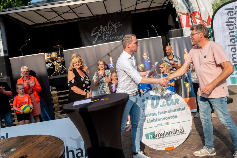 – De Stichting Hamalandhal Lichtenvoorde omvat een grote accommodatie voor binnensporten die in het beheer is van vrijwilligers van vijf verenigingen. Voor het tienjarige bestaan pakte de stichting afgelopen weekend flink uit met onder meer een sportspeeltuin in de hal voor de jeugd en een feestavond in de openlucht. “Dit is om het feit dat het het best spannend was dat vijf binnensportverenigingen van de gemeente het vertrouwen kregen om de twee sporthallen te runnen”, zegt facilitair manager Tim Bader.