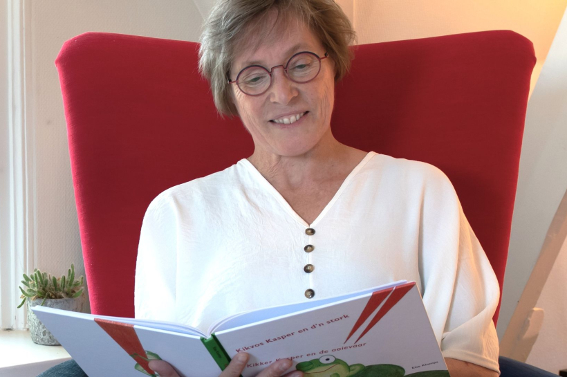 In de voorleesstoel zit Else Klomps, die uit haar boek Kikvors Kasper en d’n stork / Kikker Kasper en de ooievaar voorleest. Het kleurrijke boekje is in het Achterhoeks dialect door Else geschreven en geschikt voor iedereen die van (voor)lezen houdt. Zelf nam Else het potlood ter hand om prachtige illustraties te maken. Het belooft een gezellig uurtje te worden, waarbij Else je meevoert in dit spannende verhaal!