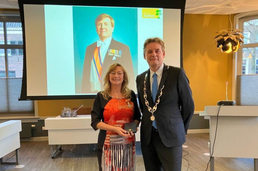 AALTEN – Een wisseling van de wacht of beter gezegd een verschuiving van de taken, maakte dat deze week museumdirecteur Gerda Brethouwer (67) van het Nationaal Onderduikmuseum in Aalten is geridderd. Ze ontving deze koninklijke onderscheiding van burgemeester Anton Stapelkamp in het gemeentehuis waar een receptie gaande was ter ere van Brethouwers tomeloze inzet voor het museum. Ze droeg onder meer bij aan de Duits-Nederlandse samenwerking dat tot in het museum te zien en te merken is. Én ze is voornemens in haar nieuwe functie het museum tot één kenniscentrum te laten worden door onder meer lokale verhalen, verhalen uit de grensstreek van een bredere context van de wereld te voorzien.